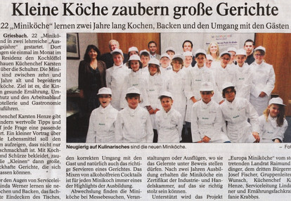 22 Kinder im Alter von 10 und 11 Jahren schnuppern hier in Bad Griesbach im Laufe der monatlichen Treffen in wichtige Kerngebiete eines modernen und kundenorientierten Gastronomiebetriebs. Vom landwirtschaftlichen Grundverständnis, Umweltschutz, übers Kochen bis hin zu Servicetätigkeiten.