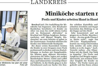 Nach dem langwierigen Anlauf ist die Begeisterung bei den Miniköchen, deren Eltern, Großeltern und den Teamleitern und Organisatoren unglaublich. Dass wir in Bruchsal Gastronomen haben, die sich um dieses gesellschaftliche Grundthema kümmern, ist ein Glücksgriff und den Initiatoren der Evangelischen Kirchengemeinde Heidelsheim und weiteren Ernährungsprofis ist es zu verdanken, dass wir bald die Miniköche bei öffentlichen Auftritten erleben können.